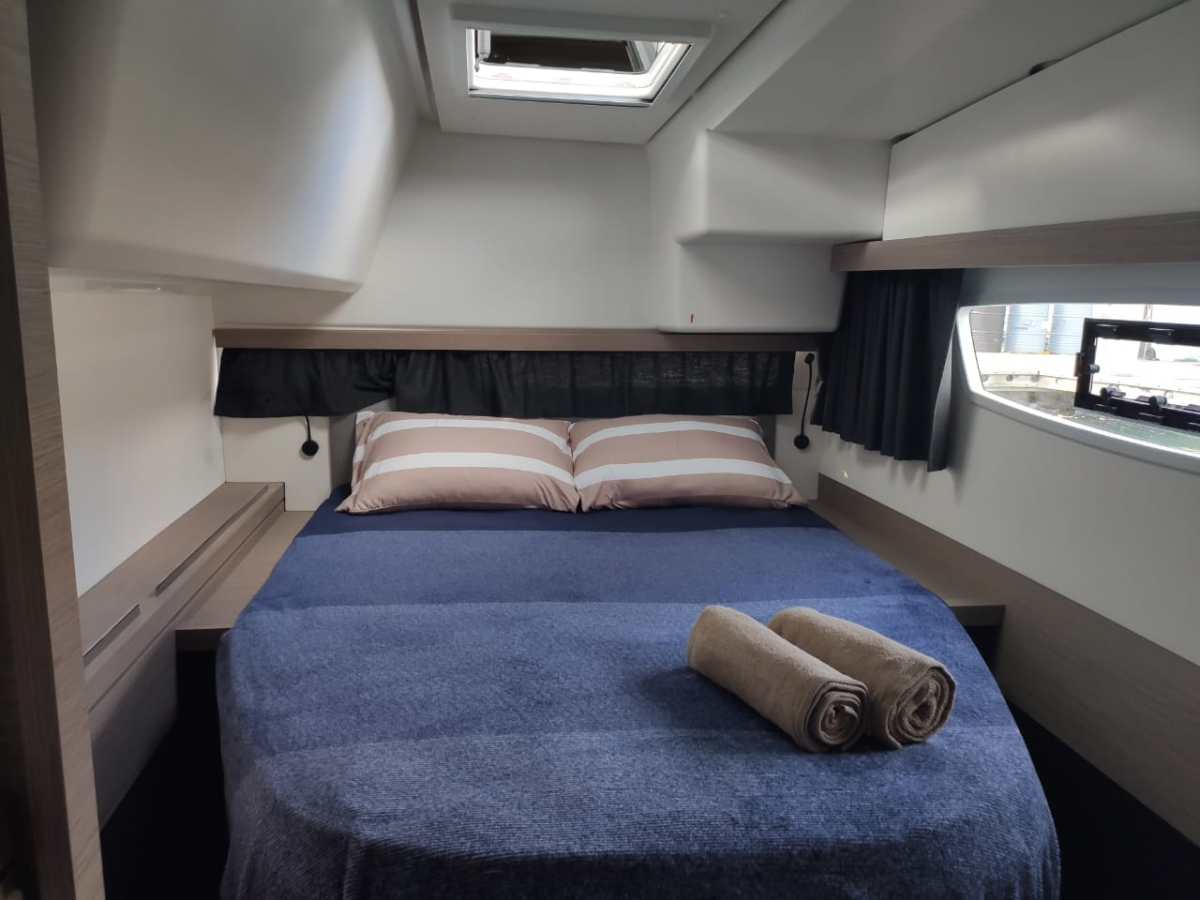 One of the best catamarans designers, Olivier Racupo, has designed a catamaran with elegant and modern lines, redesigned the steering and also optimized the volumes of the living space. Not surprisingly, the comfortable and manoeuvrable Lucia 40 has become the most popular 40ft catamaran on the market. This catamaran is a real revolution in its class.